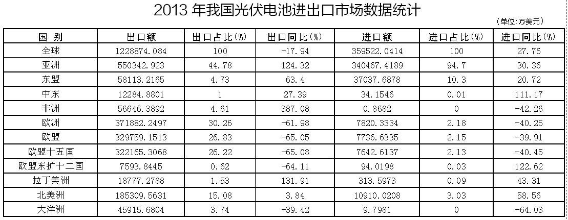 2013年我國光伏電池進出口市場數(shù)據(jù)統(tǒng)計
