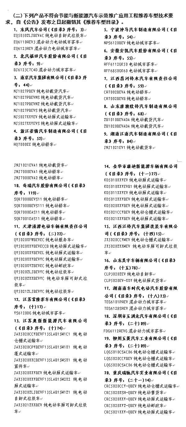附:被清出《推薦車型目錄》的產(chǎn)品明細(xì)表