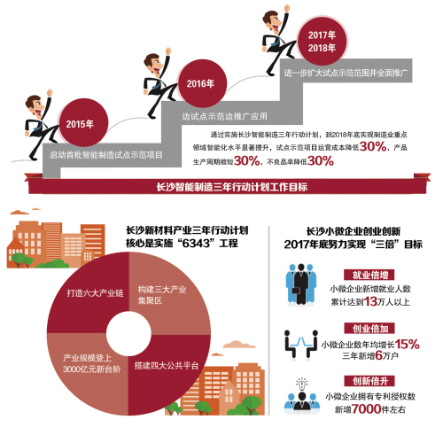 昨日,“中國制造2025長沙在行動”啟動,《長沙智能制造三年(2015-2018年)行動計(jì)劃》、《長沙市新材料產(chǎn)業(yè)發(fā)展三年(2015-2018年)行動計(jì)劃》、《關(guān)于支持發(fā)展創(chuàng)客空間的若干意見》,以及“小微企業(yè)創(chuàng)新創(chuàng)業(yè)”等系列政策全新發(fā)布,開始實(shí)施。