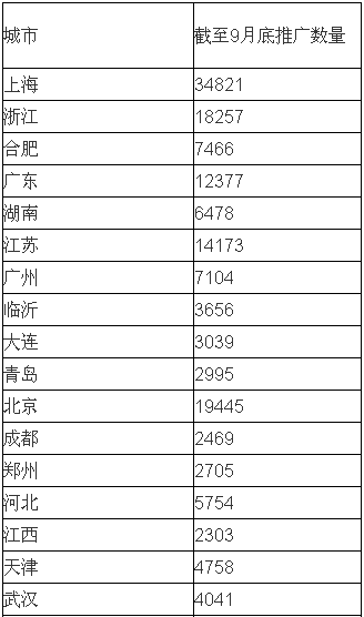 細(xì)分來(lái)看,截至9月已有上海、浙江省城市群、合肥、廣東省城市群、湖南省城市群5個(gè)城市(群)完成既定推廣目標(biāo),累計(jì)推廣量達(dá)79399輛,占比39個(gè)推廣城市群總推廣量的44%。僅上海一城市完成推廣量就達(dá)34821輛,占比城市推廣量的19.24%,完成推廣目標(biāo)的近3.5倍;緊隨其后的浙江省城市群完成推廣量為18257輛,超額完成推廣目標(biāo)(10100輛)的80%之多。此外,還有6個(gè)示范推廣城市群推廣完成率超過(guò)50%,江蘇省城市群完成率78%,與推廣目標(biāo)相差不足4千輛,廣州完成率71%,相差2896輛,臨沂完成率64%,相差2034輛;青島完成率58%;北京完成率56%。