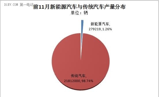 根據(jù)機(jī)動(dòng)車整車出廠合格證統(tǒng)計(jì),今年1-11月新能源汽車?yán)塾?jì)產(chǎn)量達(dá)27.92萬輛,占比傳統(tǒng)車?yán)塾?jì)產(chǎn)量的1.28%。銷量方面,根據(jù)中汽協(xié)數(shù)據(jù)統(tǒng)計(jì),今年1-10月新能源汽車?yán)塾?jì)銷量171145輛,已占傳統(tǒng)車總銷量(1927萬輛)的0.88%。