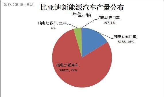 排名首位的比亞迪,前11月累計(jì)產(chǎn)量達(dá)5.03萬輛,其中,插電式乘用車產(chǎn)量為3.98萬輛,占比車企總產(chǎn)量的79%,純電動(dòng)乘用車產(chǎn)量達(dá)8183輛,占比16%,純電動(dòng)客車、純電動(dòng)專用車產(chǎn)量分別為2144輛和197輛,占比4%和1%。
