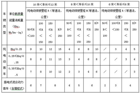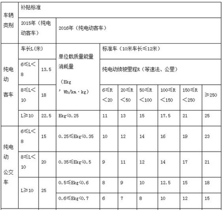 注:純電動客車(純電動公交車)補貼標準以2016年為基準,2017-2018年補助標準在2016年基礎(chǔ)上下降20%,2019-2020年補助標準在2016年基礎(chǔ)上下降40%,補貼長度以10—12米純電動客車為標準車,其他長度純電動客車補貼標準按照上表單位載質(zhì)量能量消耗量和純動車續(xù)駛里程劃分,插電式混合動力客車(含增程式)補貼標準按照上表純動車續(xù)駛里程劃分,其中,6米及以下客車按照標準車0.2倍給予補助;6米<車長≤8米客車按照標準車0.5倍給予補助;8米<車長≤10米客車按照標準車0.8倍給予補助;12米以上、雙層客車按照標準車1.2倍給予補助。