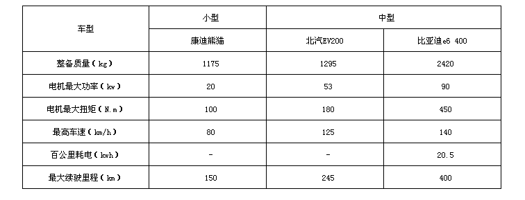 表格:我國部分電動汽車產(chǎn)品性能