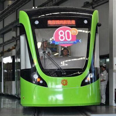 8月1日,中國(guó)首列完全自主化全線無(wú)接觸網(wǎng)“超級(jí)電容”現(xiàn)代有軌電車在中車株洲電力機(jī)車有限公司下線。這輛車的最大載客量達(dá)到380人,行走在馬路上,真是名符其實(shí)的巨無(wú)霸。