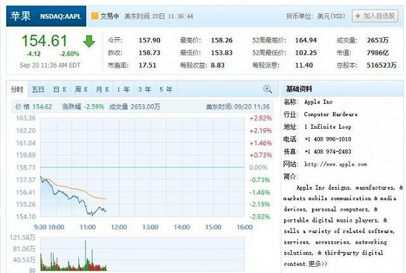 蘋果股價(jià)連續(xù)下滑 恐創(chuàng)下十年來發(fā)布周最差表現(xiàn)2017-09-22 11:31