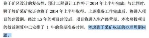 在相關公告中,公司則給出了“辦理采礦權證流程較長”、“工藝較新,公司謹慎對待”等解釋,但如此說法稍顯不妥,畢竟當初定增時,曾明確提及“考慮到了采礦權證的辦理周期問題”。