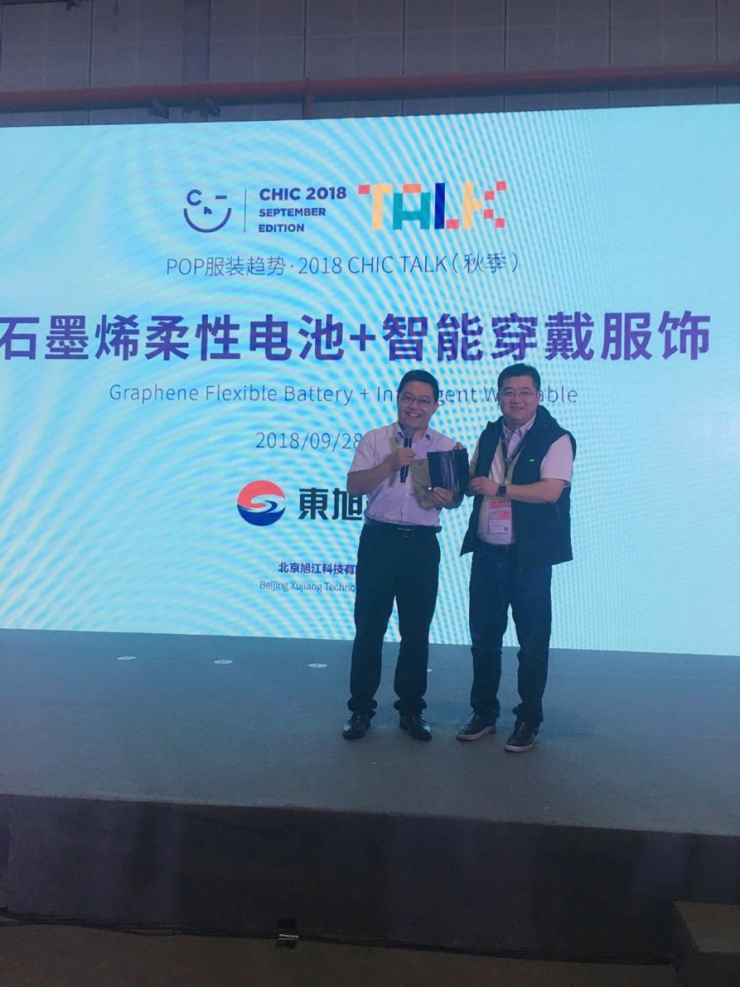 電池+智能穿戴服飾”戰(zhàn)略發(fā)布會在2018中國國際服裝服飾博覽會上舉行。記者從現(xiàn)綢悉,東旭光電研發(fā)的石墨烯柔性