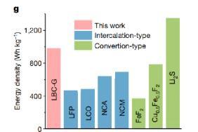 圖|電池的正極材料(LBC-G)能量密度達(dá)到了970Wh/kg(來(lái)源:該研究論文)
