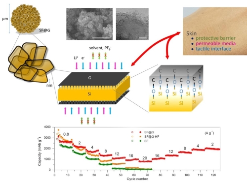 圖1. 石墨烯與硅及其他高容量儲能電極材料的雜化方法和策略