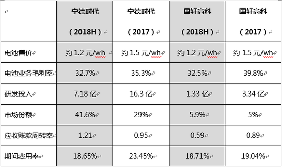 新浪財(cái)經(jīng)綜合了寧德時(shí)代和國(guó)軒高科兩家公司相關(guān)財(cái)務(wù)報(bào)告,以及券商的研究報(bào)告,給出了主要指標(biāo)的大致數(shù)據(jù),從上表中可以清楚得到如下一些結(jié)論。