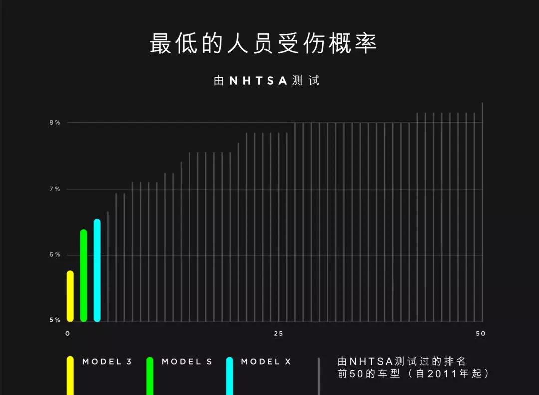 基于 Model S 和 Model X 的先進(jìn)架構(gòu),特斯拉設(shè)計(jì)了 Model 3,將其打造成有史以來(lái)最安全的電動(dòng)汽車。在先前接受美國(guó)國(guó)家公路交通安全管理局(NHTSA)測(cè)試的車型中,Model S 的人員受傷概率是最低的,Model X 則緊隨其后,名列第二。如今,Model 3 不僅在每個(gè)類別和子類別中獲得全五星安全評(píng)級(jí),并且NHTSA的測(cè)試還顯示,在所有接受過(guò)測(cè)試的車型中,Model 3 的人員受傷概率是最低的。