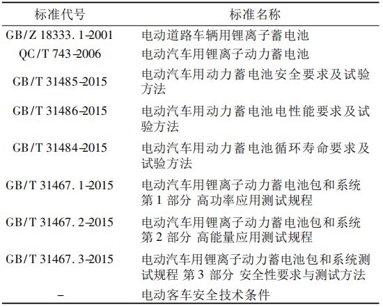 表 2 國(guó)內(nèi)常用的動(dòng)力鋰離子電池標(biāo)準(zhǔn)