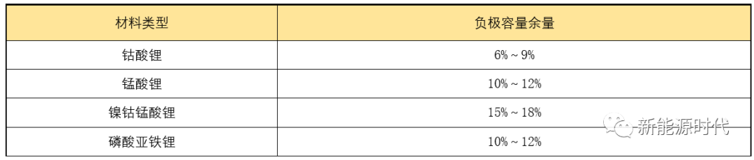 負(fù)極容量余量:因?yàn)樨?fù)極從開(kāi)始形成SEI膜到循環(huán)的修復(fù)SEI等反應(yīng),需要不斷消耗鋰離子,所以負(fù)極需要設(shè)定一定的損耗余量。