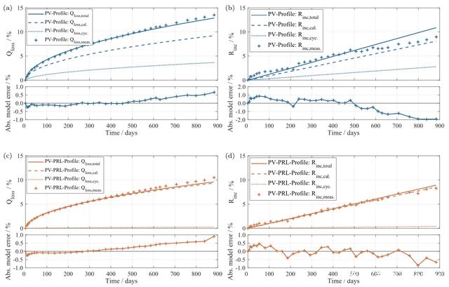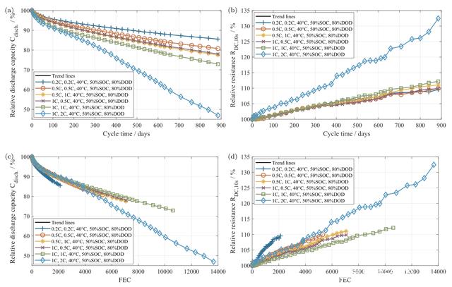 近日,德國慕尼黑工業(yè)大學的Maik Naumann(第一作者,通訊作者)等人對來自索尼公司的商業(yè)磷酸鐵鋰電池的循環(huán)壽命衰降進行了分析,并建立了模型,該模型對容量損失的預(yù)測誤差小于1%,對于內(nèi)阻的預(yù)測誤差小于2%。