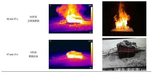 過充觸發(fā)熱失控同樣可以分為5個階段:1. 電池鼓脹;2. 一端爆噴;3. 另一端爆噴;4. 安靜燃燒;5. 結(jié)束。