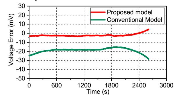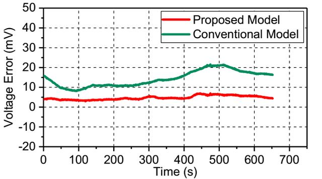 下圖中作者對(duì)比該修正后等效電路模型與傳統(tǒng)的等效電路的模擬效果,當(dāng)電池在1C倍率放電和5℃的條件下,傳統(tǒng)的等效電路模型的誤差要明顯的高于修正后的等效電路模型,傳統(tǒng)的等效電路模型的誤差為-14.86mV至-28.68mV之間,而修正后的模型的電壓誤差則僅為-3.68mV至4.45mV之間。