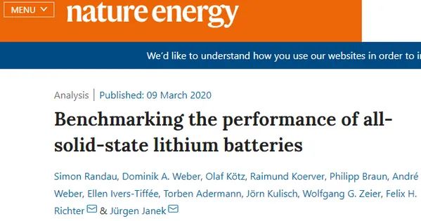 提高電化學(xué)儲存裝置的比能量、能量密度、比功率、能量效率和能量保持率是推動全固態(tài)電池發(fā)展的主要動力。然而,對全固態(tài)電池性能的一般評估往往很難從已發(fā)表的報告中得出,這主要是因為性能測量之間的相互依賴,但也因為缺乏基本的參考系統(tǒng)。在這里,作者提出的全固態(tài)電池只包含一個鋰金屬負(fù)極,β-Li3PS4固體電解質(zhì)和Li(Ni0.6Co0.2Mn0.2)O2正極活性物質(zhì)。作者使用這個最簡單的系統(tǒng)來對全固態(tài)電池的性能進行基準(zhǔn)測試。在Ragone類型的圖表中,作者將硫代磷酸酯、氧化物、磷酸鹽和聚合物全固態(tài)電池的文獻(xiàn)數(shù)據(jù)與這種精簡的電池進行了比較。利用關(guān)鍵性能參數(shù)的基本方程,確定了高能、大功率、實用型全固態(tài)電池的研究目標(biāo)。