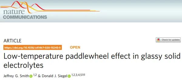 該工作采用分子動力學(xué)方法刻畫了典型玻璃態(tài)75Li2S–25P2S5中鋰離子的遷移過程,發(fā)現(xiàn)鋰離子的遷移是通過如下聯(lián)合機制發(fā)生的:鋰離子的協(xié)同運動與PS43-陰離子的定向運動相結(jié)合。其中,陰離子的定向運動效應(yīng)被稱為“明輪”機制。明輪機制一般出現(xiàn)在高溫結(jié)晶聚合物中。與結(jié)晶材料相比,玻璃材料中的明輪動力學(xué)有助于室溫下離子的遷移。通過刻畫與離子遷移的空間、時間、振動以及能量的關(guān)聯(lián)性,證實了明輪效應(yīng)對Li+遷移的貢獻(xiàn)。此外,玻璃中的動力學(xué)與穩(wěn)定的結(jié)晶類似物γ-Li3PS4中的動力學(xué)不同。在γ-Li3PS4中,陰離子重定向被忽略,離子遷移率降低。因此,這些體系可能是尋找新的固體電解質(zhì)的方向。