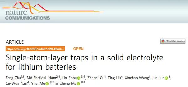 Single-atom-layer traps in a solid electrolyte for lithium batteries