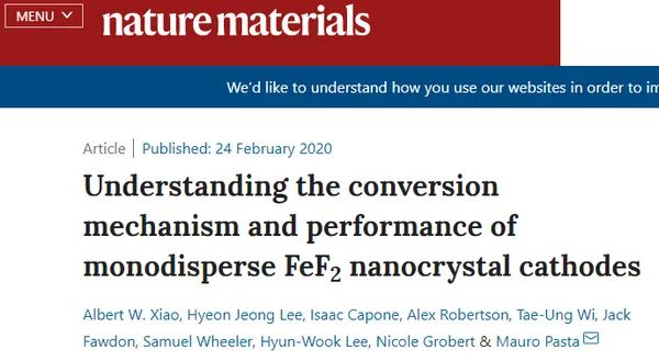 單分散FeF2納米晶正極的轉(zhuǎn)化機理和性能研究