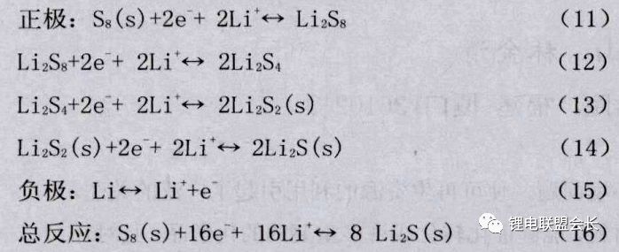 其中以正極材料為單質(zhì)硫 (主要以S8環(huán)形態(tài)存在)計(jì)算,其理論比容量為1675mAh/g,理論放電電壓為2.287V,理論能量密度為2600Wh/kg。充放電時(shí),電極反應(yīng)如下所示: