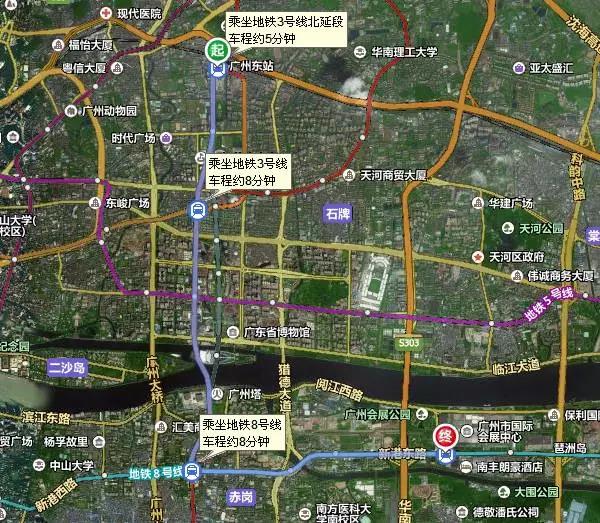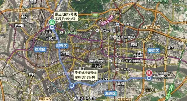 地鐵:在機(jī)場乘坐地鐵3號(hào)線至客村站轉(zhuǎn)乘8號(hào)線,然后在琶洲站A出口出;