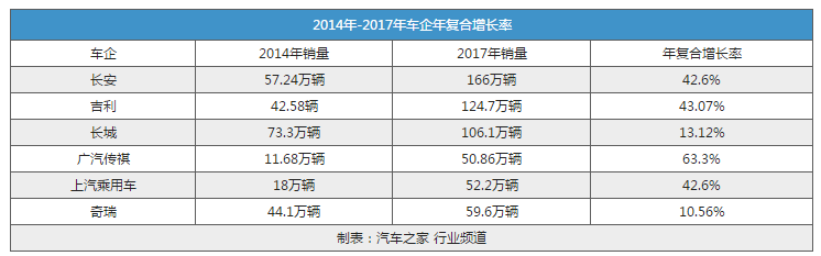 2013年是奇瑞的轉(zhuǎn)折點,這一年奇瑞銷量降至44.39萬輛,排名也跌至中國品牌第四,并且從此之后再也沒有回到前三。與之相反,是中國汽車市場的快速發(fā)展,2014年-2017年,中國市場汽車銷量從2349萬輛增長到2888萬輛,各頭部中國品牌都拿出了亮眼的成績單,而奇瑞則僅從44.1萬輛增長到59.6萬輛。
