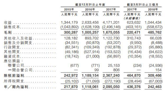 此次在港交所披露的招股書顯示,2015年、2016年、2017年和今年一季度,贛鋒鋰業(yè)的營業(yè)收入分別為人民幣13.44億元、26.33億元、41.71億元和10.44億元,公司純利分別為2.18億元、11.18億元、20.95億元和2.42億元。