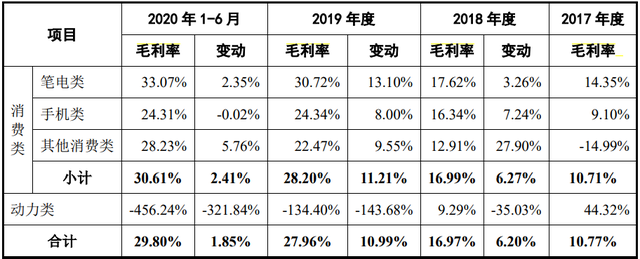 但是,其動(dòng)力鋰離子電池業(yè)務(wù)自開始布局以來,發(fā)展就呈現(xiàn)下降趨勢并且毛利率由正變負(fù)。報(bào)告期內(nèi),動(dòng)力類鋰離子電池的銷售收入占主營業(yè)務(wù)收入的比例極小,不超過0.22%,其毛利率分別為44.32%、9.29%、-134.40%及-456.24%,由正變?yōu)樨?fù)且持續(xù)下降。