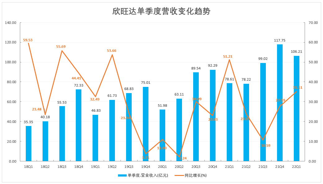 4月26日晚,欣旺達(dá)發(fā)布了一季度報(bào)告。報(bào)告期內(nèi),公司實(shí)現(xiàn)營(yíng)業(yè)收入106.21億元,同比增長(zhǎng)35.11%;歸母凈利潤(rùn)9492.32萬元,同比下降26.13%;扣非凈利潤(rùn)1.01億元,同比下降38.09%;基本每股收益0.05元。