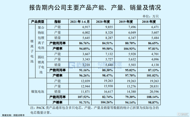 具體來看,報告期各期內(nèi),公司 70%以上的主營業(yè)務(wù)收入來自鋰離子電池業(yè)務(wù)。公司的主要競爭對手有ATL、FDK、欣旺達(dá)、億緯鋰能、鵬輝能源、珠海冠宇等。旗下主要產(chǎn)品為二次清潔電池中的聚合物軟包鋰離子電池、圓柱鋰離子電池及鎳氫電池。其中,聚合物軟包鋰離子電池業(yè)務(wù)收入2020年占比已超過50%。