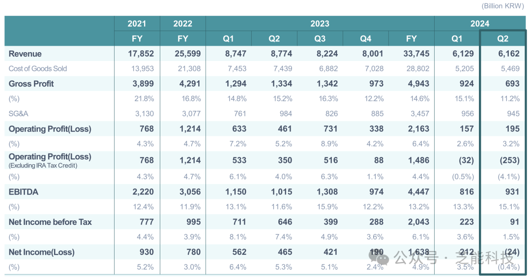 LG新能源公布了2024年第二季度財報,在全球電動汽車市場放緩的大環(huán)境下: