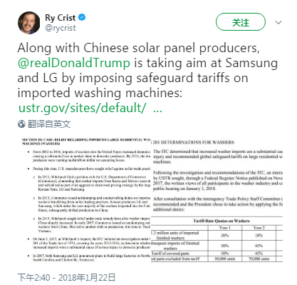 美國(guó)貿(mào)易代表(USTR) Robert Lighthizer在一份聲明中表示:“2011年,美國(guó)商務(wù)部發(fā)現(xiàn)一些國(guó)家對(duì)生產(chǎn)者提供了補(bǔ)貼,生產(chǎn)商在美國(guó)的商品銷售價(jià)格低于公平的市場(chǎng)價(jià)值,這些都損害了美國(guó)制造商的利益。2012年美國(guó)實(shí)施了反傾銷和反補(bǔ)貼稅,但這些制造商通過將生產(chǎn)轉(zhuǎn)移到其他地區(qū)以逃避關(guān)稅。”