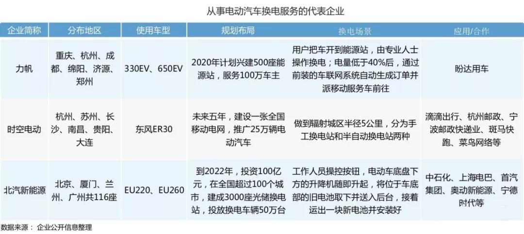 在國(guó)際上,換電模式在以色列、加拿大、澳大利亞、丹麥等國(guó)已經(jīng)有了一定的應(yīng)用和推廣。國(guó)內(nèi)的力帆股份、時(shí)空電動(dòng)、北汽新能源等企業(yè)一直在換電模式中進(jìn)行探索。相比于最早探索換電模式Better Place,這三家企業(yè)在一定程度上能夠造車或者代工生產(chǎn)汽車,解決了車輛和換電站的協(xié)同問(wèn)題。