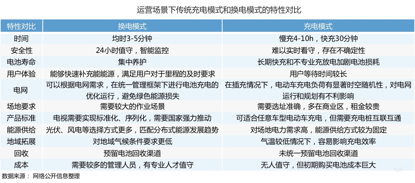 目前,我國(guó)充換電基礎(chǔ)設(shè)施建設(shè)尚處于發(fā)展初級(jí)階段,大量的企業(yè)開(kāi)展探索。就現(xiàn)有的充電模式與換電模式,無(wú)關(guān)乎哪種更好,兩者各自存在優(yōu)缺點(diǎn)。充電模式的優(yōu)勢(shì)是能利用夜間閑暇時(shí)間來(lái)補(bǔ)充能源,對(duì)電池的標(biāo)準(zhǔn)和互換性要求低,能夠節(jié)約能源。換電模式的優(yōu)勢(shì)則是能滿足用戶快速補(bǔ)充能源的需求,且不需要大規(guī)模建設(shè)充電設(shè)施,節(jié)省成本。對(duì)于用戶來(lái)講,采用電池租賃方式,由電網(wǎng)公司承擔(dān)電池的初期投資成本,可顯著降低用戶的初始購(gòu)車費(fèi)用。