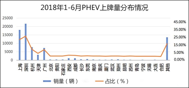 而PHEV的競(jìng)爭(zhēng),主要是以新能源汽車的邏輯思路發(fā)展,市場(chǎng)集中在深圳、上海、杭州、廣州、天津等地,主要的銷量龍頭是比亞迪和上汽兩家。總體來說,PHEV受地方政策的扶持還是比較明顯的,而且具備一定的先發(fā)優(yōu)勢(shì)和市場(chǎng)口碑效應(yīng)。前期已建立技術(shù)口碑優(yōu)勢(shì)的比亞迪和上汽,逐步在擴(kuò)展PHEV的投放車型和力度,往一線和限購(gòu)城市拓展,取得了不小的成績(jī)。