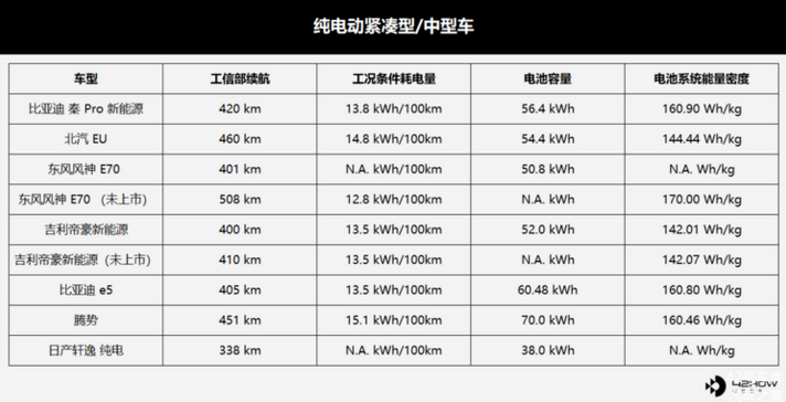 為此,我們整理了國(guó)內(nèi)主流純電動(dòng)車(chē)型工信部續(xù)航、電耗、電池容量及電池系統(tǒng)能量密度數(shù)據(jù)。