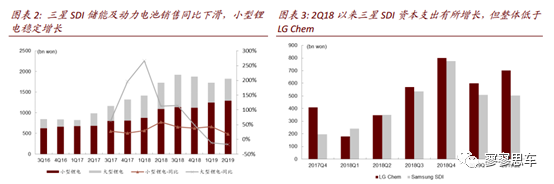 三星SDI2Q19營(yíng)收2.4萬億韓元,同增7%,其中電池業(yè)務(wù)同增5.4%。三星SDI近期公布2Q19業(yè)績(jī),總營(yíng)收2.4萬億韓元,同增7%,營(yíng)業(yè)利潤(rùn)1573億韓元,同增2.9%。其中鋰電池營(yíng)收1.8萬億韓元,同增5.4%。鋰電池細(xì)分里小型鋰電營(yíng)收約1.29萬億韓元,同比增長(zhǎng)18.3%,大型鋰電(儲(chǔ)能及動(dòng)力電池)營(yíng)收約5314億韓元,同比下降16.6%。