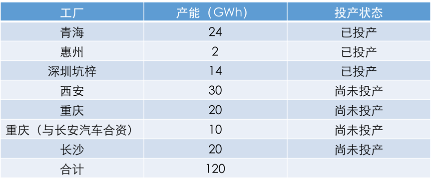 以比亞迪為例,公司此前發(fā)布快報(bào)稱,2019年1-9月累計(jì)裝機(jī)量為10.553GWh;公開資料顯示,比亞迪已投產(chǎn)工廠的產(chǎn)能已達(dá)到40GWh。此外,根據(jù)此前公開的動(dòng)力電池工廠項(xiàng)目信息,比亞迪的規(guī)劃產(chǎn)能已經(jīng)達(dá)到120GWh。