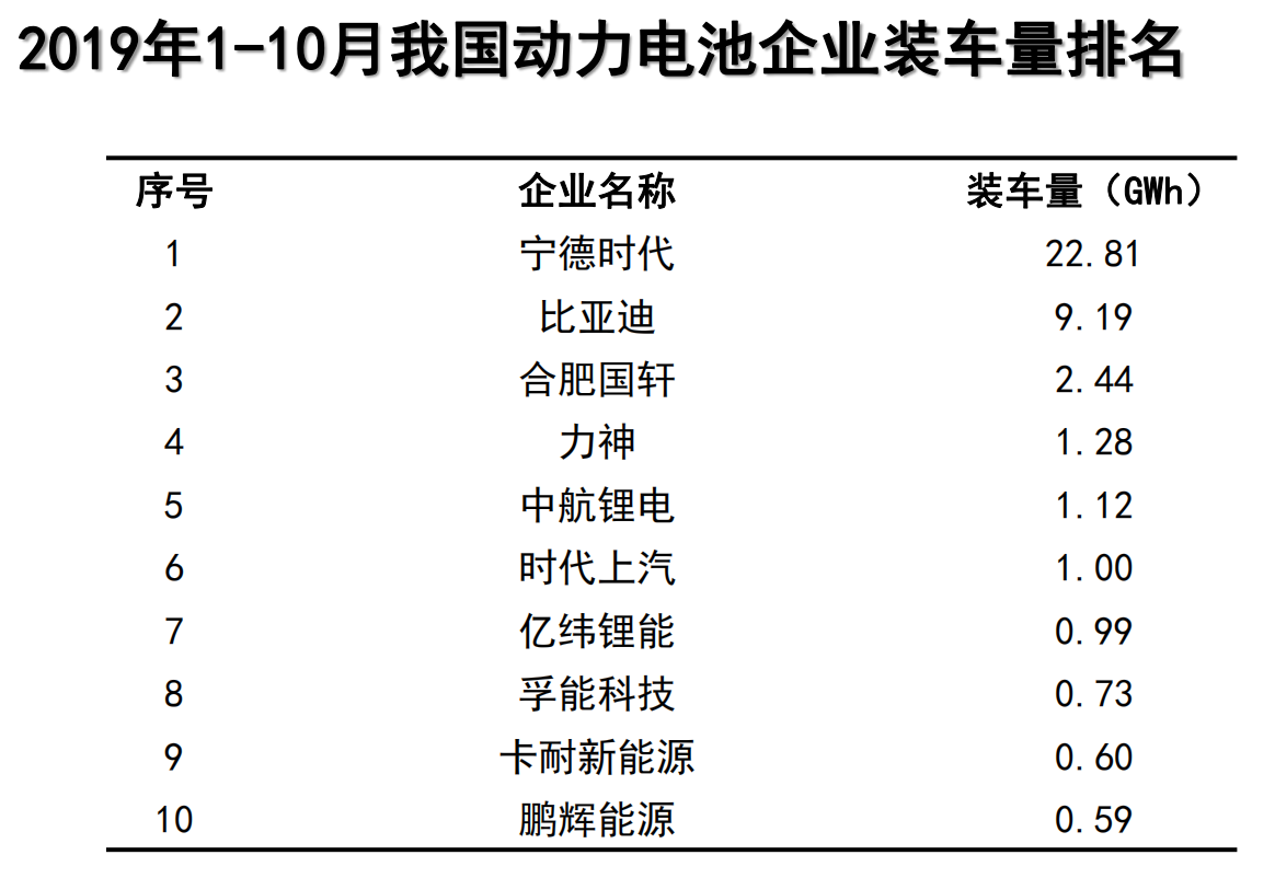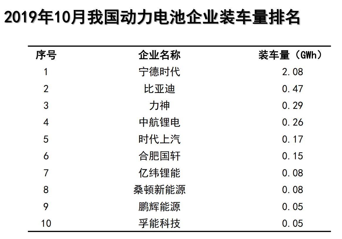 2019年10月動(dòng)力電池產(chǎn)量數(shù)據(jù)