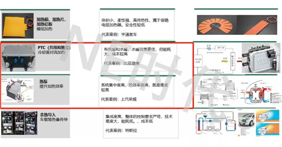 - 加熱市場:目前新能源汽車還未大批量的銷售到北方市場,而對于北方低溫區(qū)域,傳統(tǒng)的空調(diào)已經(jīng)不適用;電動空調(diào)使用單一的PTC加熱,其制熱效率較低,尤其是在冬天車輛啟動和冷充電的時候能耗很高,冬天開空調(diào)后也會使續(xù)駛里程大幅下降,熱泵的制熱效率高,但是成本和系統(tǒng)復(fù)雜度也更高。目前更多加熱的方式依舊是采用PTC,因為其價格適中,系統(tǒng)結(jié)構(gòu)相對簡單,只用在電動空調(diào)的基礎(chǔ)上再增加閥體和板換同空調(diào)系統(tǒng)進行并聯(lián)即可實現(xiàn)。未來隨著熱泵技術(shù)的不斷發(fā)展,效率再次提升、成本降低后,熱泵空調(diào)將成為熱管理的首選。