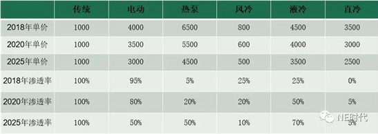 新能源汽車熱管理未來前景廣闊,2025年國內(nèi)市場超400億,電池?zé)峁芾磉_(dá)200億。按照國內(nèi)空調(diào)和電池?zé)峁芾淼膯诬噧r格和未來的滲透率來測算,NE預(yù)測2020年、2025年國內(nèi)的新能源汽車銷量按積極因素預(yù)測,有望達(dá)到200萬和500萬輛,相對應(yīng)的汽車熱管理市場空間分別105億、405億;電池?zé)峁芾硎袌龇謩e為80億、204億。也就是說,未來新能源汽車的電池?zé)峁芾韺⑦_(dá)到和傳統(tǒng)汽車空調(diào)一樣的整車熱管理份額。