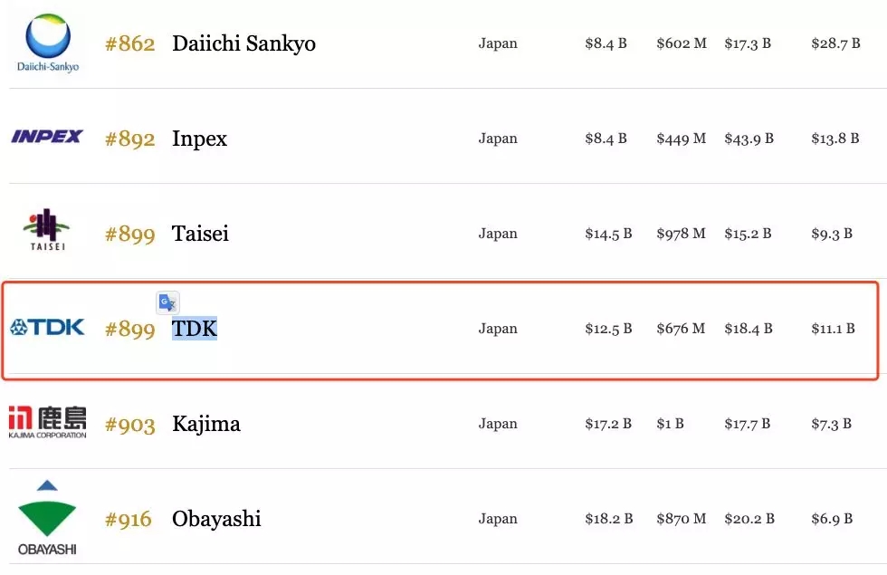 TDK株式會(huì)社是一家日本上市公司,目前在福布斯全球最大的上市企業(yè)目錄中排名899位,是全球知名的電子工業(yè)品牌。