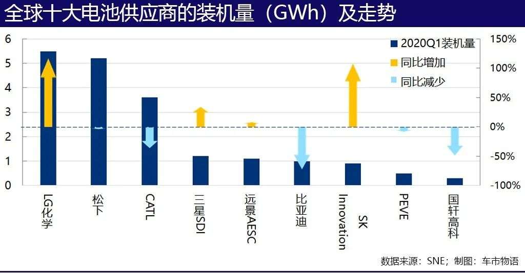 今年第一季度,全球動(dòng)力電池裝機(jī)量同比下降了14.2%,中國(guó)電池商的裝機(jī)量下降了54.3%,LG化學(xué)和松下聯(lián)手將寧德時(shí)代趕下了第一的寶座。變天了!