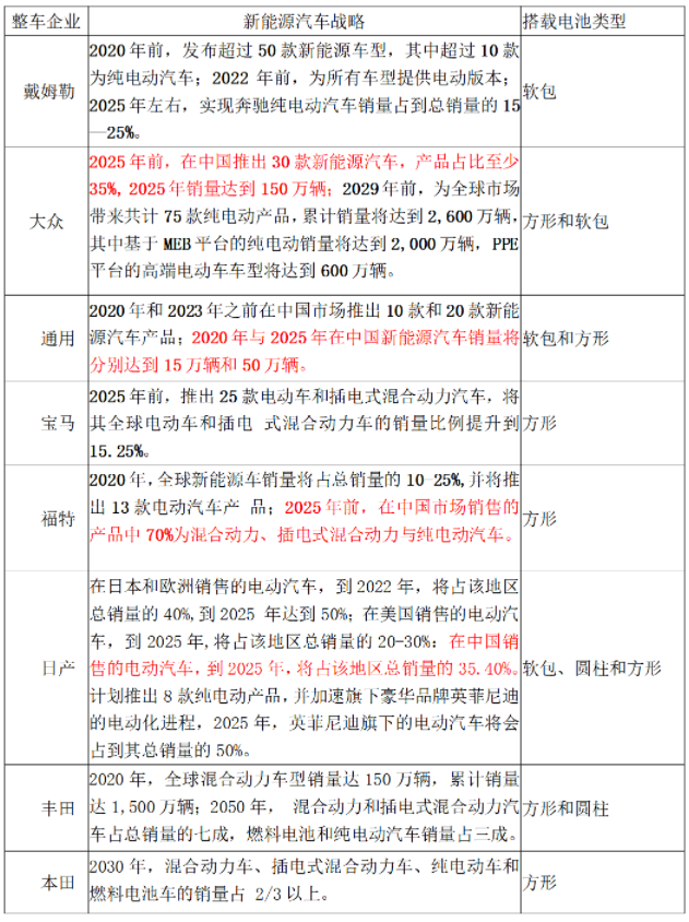 全球各整車企業(yè)新能源汽車戰(zhàn)略