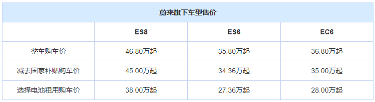 從上表可以看出,選擇電池租用方式購(gòu)車后,蔚來旗下車型的售價(jià)有了大幅降低,其中ES6與EC6的起售價(jià)不到30萬(wàn),價(jià)格整整降了一個(gè)級(jí)別。而消費(fèi)者還可以針對(duì)該價(jià)格繼續(xù)靈活使用不同銀行的金融服務(wù),從而減小購(gòu)車負(fù)擔(dān)。但與購(gòu)買含電池整車不同的是,消費(fèi)者還需要承擔(dān)每個(gè)月最低980元的花銷,且只要在用電池,那么這筆費(fèi)用就會(huì)永遠(yuǎn)存在。