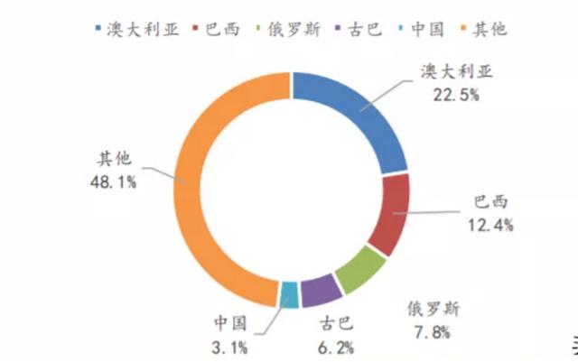 硫化鎳礦主要分布在加拿大、澳大利亞、俄羅斯、中國等地,該礦產(chǎn)冶煉工藝成熟,副產(chǎn)品較多,但采礦成本較高。