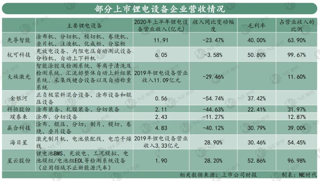 并且主營后段鋰電設(shè)備的杭可科技和星云股份,2020年上半年毛利率還超過了50%。