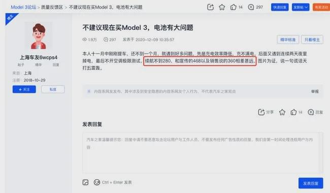 車主反映,實際測試下來的續(xù)航里程都只有260km-340km左右,續(xù)航里程幾乎都是打了對折。